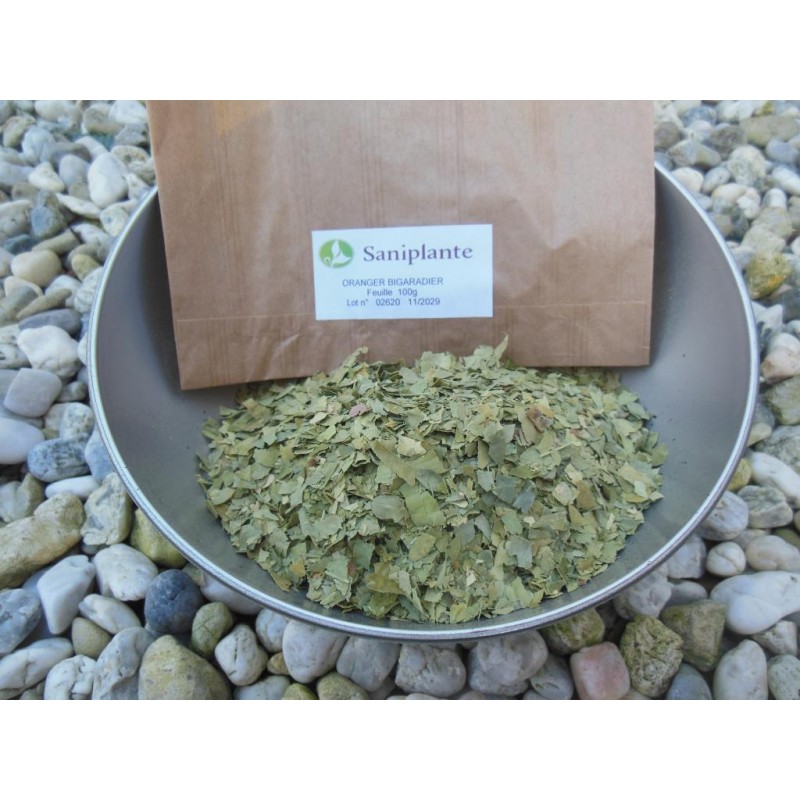 La feuille du bigaradier a des propriétés sédatives, elle calme les spasmes des personnes nerveuses et leur permet de trouver le sommeil. Antispasmodique, elle calme les crampes d'estomac, les palpitations, les toux quinteuses et les céphalées. Elle peut être utilisée par les enfants sans aucun problème.